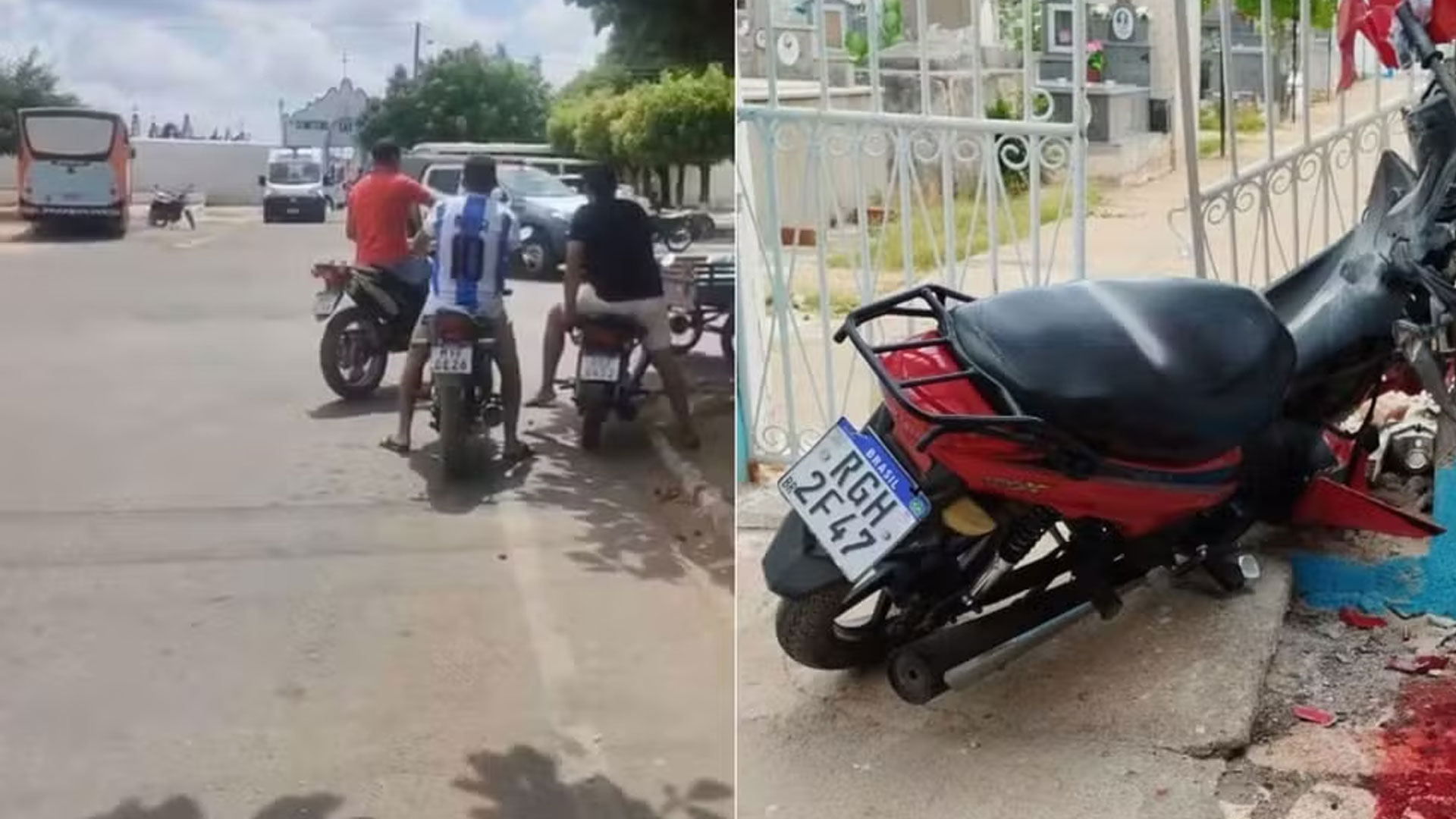 Um homem morreu após bater a moto que pilotava no portão de entrada do cemitério de Governador Dix-Sept Rosado, no Oeste potiguar. O acidente aconteceu na manhã deste sábado (3). A vítima foi identificada como Paulo Roberto Menezes Bezerra, de 51 anos.Segundo informações da Polícia Militar, o homem trafegava em uma motocicleta quando perdeu o controle do veículo e colidiu contra o portão e o muro do Cemitério São Sebastião, localizado no centro da cidade.Ainda segundo a PM, quando a equipe chegou ao local, uma ambulância do hospital do município já prestava atendimento à vítima. O homem foi socorrido e encaminhado para a unidade hospitalar, mas não resistiu à gravidade dos ferimentos e morreu.Fonte: Portal G1 RN Navegação de PostAlexandre de Moraes decreta prisão domiciliar de Filipe Martins, condenado a 21 anos Quero punição rigorosa’, diz avó de jovem que morreu após suposta troca de medicação em UPA de Natal