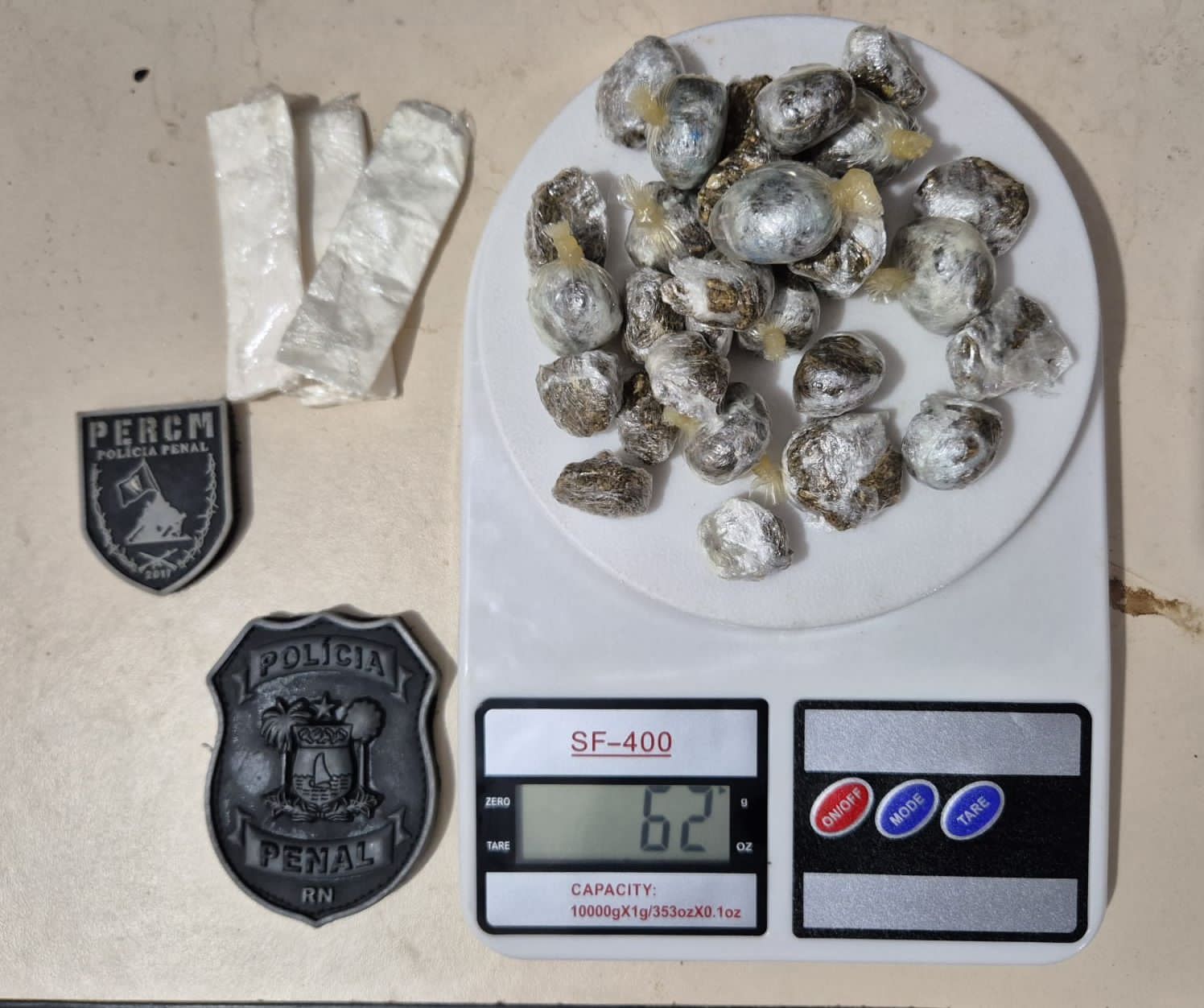 Policiais penais da Penitenciária Estadual Rogério Coutinho Madruga (PERCM), localizada em Nísia Floresta, prenderam, por volta das 15h desta quinta-feira (12), uma visitante que tentava ingressar na unidade prisional com cerca de 30 papelotes, totalizando 62 gramas de substância ilícita, possivelmente maconha.O flagrante ocorreu no hall de entrada, durante o procedimento padrão de revista eletrônica por meio do equipamento de escaneamento corporal (bodyscan). Ao passar pelo raio-X, a mulher, de 21 anos, teve uma anomalia identificada sob as vestes pela policial penal responsável pela operação.De acordo com o diretor da unidade, Reinaldo Galvão, o equipamento apontou irregularidade na região do sutiã.Questionada pela equipe, a suspeita confessou que transportava a droga e que pretendia entregá-la ao companheiro custodiado na unidade.Diante da situação, os policiais penais deram voz de prisão e encaminharam a mulher à Delegacia de Plantão da Polícia Civil para os procedimentos legais cabíveis. A substância apreendida foi recolhida e encaminhada para análise da Polícia Científica, órgão responsável pela perícia oficial no Estado.A ocorrência reforça a efetividade do uso de tecnologias de inspeção e o rigor dos protocolos de segurança adotados pela Polícia Penal do Rio Grande do Norte, fundamentais para impedir a entrada de ilícitos nas unidades prisionais e garantir a ordem, a disciplina e a segurança no sistema penitenciário estadual. Navegação de PostDeputada Cristiane Dantas critica mais um imposto cobrado pelo Governo Fátima e alerta para aumento de preços no RN Motorista de aplicativo sem CNH é flagrado dirigindo embriagado na Grande Natal