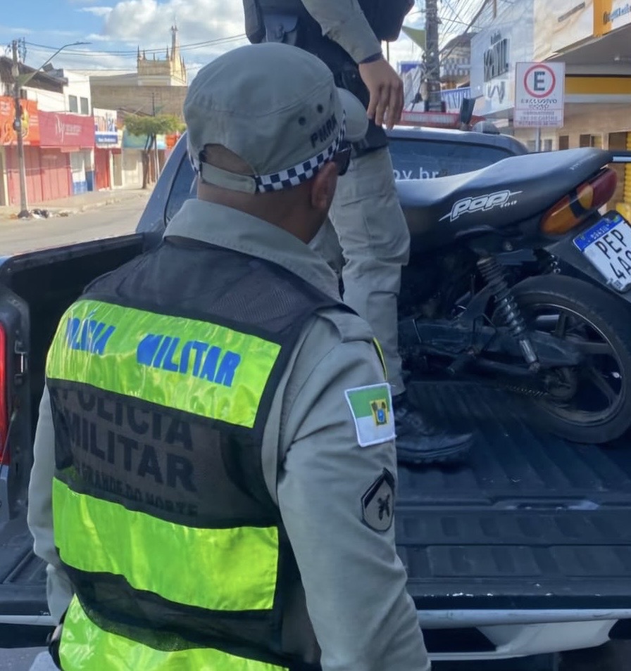 Foto: PMRNDurante patrulhamento ostensivo realizado por volta das 15h da sexta-feira (03), em Macaíba, novos soldados em estágio operacional demonstraram eficiência ao identificar e apreender uma motocicleta com sinais de adulteração.A equipe da Força Tática do 11º BPM foi acionada para prestar apoio à Patrulha Mike 02, formada por policiais recém-ingressos na corporação que atuavam no policiamento a pé na localidade. Durante a ação, os militares abordaram um condutor que trafegava em uma motocicleta modelo Honda Pop 100.Ao realizar a verificação do veículo, os policiais constataram indícios de adulteração nos sinais identificadores da motocicleta, o que levantou suspeitas quanto à sua procedência.Diante da irregularidade, o condutor e o veículo foram encaminhados à 3ª Delegacia de Polícia Civil, em Parnamirim, onde foram adotados os procedimentos legais cabíveis.Fonte PMRN Navegação de PostColisão na Rota do Sol deixa duas mulheres mortas