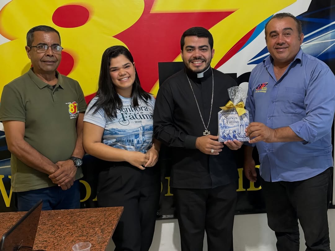 A Rádio 87 FM Macaíba, através do Programa “A Voz da Comunidade” na apresentação de Thomas Sena e JoseLuizDelarosa receberam a visita do Padre Thiago e da jovem Jade (AsseCom) para divulgar as ações para a Festa de Nossa Senhora de Fátima 2026, cuja Paróquia está localizado no Bairro Vilar.A programa começa dia 01 de maio, com uma carreata solene com a imagem de Nossa Senhora de Fátima, desde a Capela de são Sebastiao, na Comunidade Rural do Riacho do Sangue em direção a Igreja Matriz.A programação social encerra-se no dia 13 de maio … Navegação de PostInmet publica alertas de chuvas intensas para todo o RN Assembleia de Deus comemora o aniversário do pastor Josafar